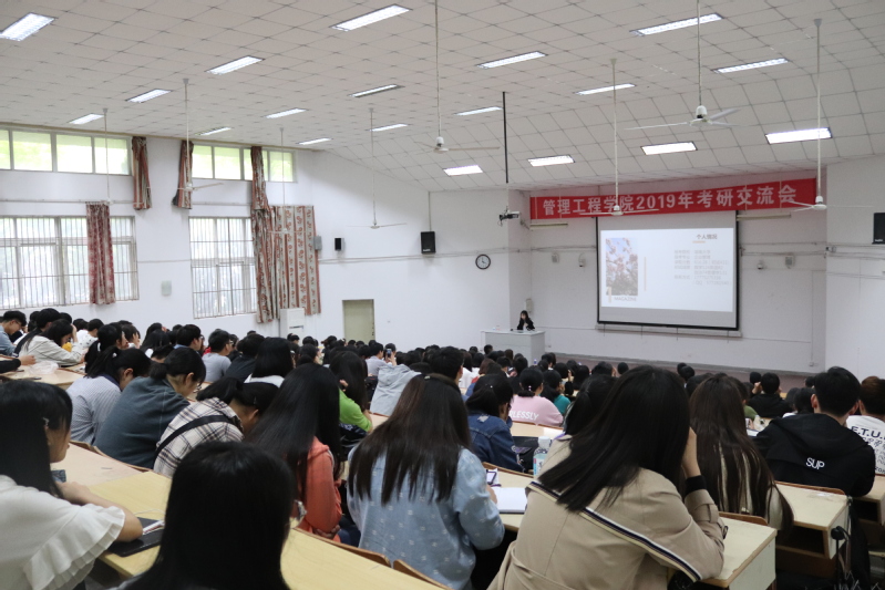 为强化学生的考研意识,营造良好的学习氛围,加强学习交流。4月21日下午,管理工程学院在2教报告厅举办了2019年考研经验交流会,2015级优秀考研学生刘郑、汪悦、黄晗、杜颖受邀为学弟学妹指点迷津,2016级、2017级学生参加了本次会议。