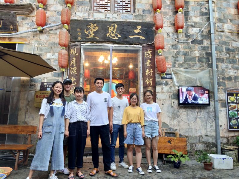 这次调研活动主要从历史变迁、经济发展、文化宣传等方面展开,着重考察 “一带一路”城市发展与文化传承对黄山宏村的影响。活动中,同学们走进村中,和当地居民沟通,实地走访村里徽州名菜馆三思堂,与名菜馆老板进行了深入交流。“一带一路”政策影响下,三思堂的外国游客增加了很多,店家也因此在产品的展示和内容的介绍上增加了语言翻译,推出适合他们口味的菜品。宏村是徽州文化的代表村落,外国游客众多,同学们和外国游客进行了简单的交流,发现他们对徽州文化很有兴趣,也对中国提出的“一带一路”政策和做法,表示赞同与肯定,他们一致认为,“一带一路”是我们国家友好发展的一个重大战略,要好好走到更灿烂的未来里去。