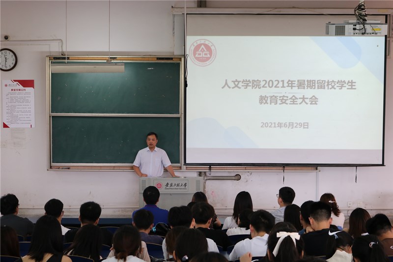 为落实学校对于加强暑期留校学生管理工作会议精神和文件要求,做好暑期留校学生安全防范教育,为我院考研构建安全稳定环境,人文学院2021年暑期留校学生安全教育大会于6月29日在6教214召开。院党委书记邓英扣,党委副书记金艾裙,组织员,全体辅导员出席会议,会议由团委书记(学工秘书)谢红翠主持。
