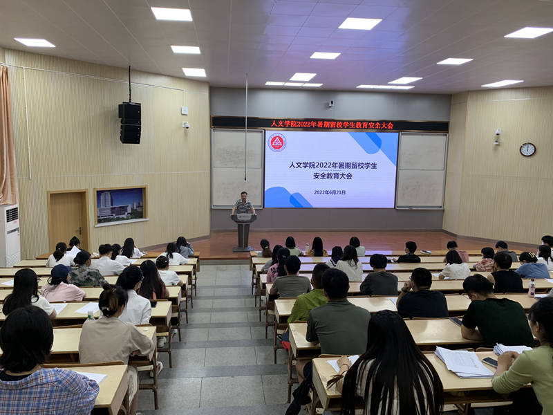 暑期留校园,安全记心间。6月21日下午,人文学院在2J报告厅召开2022年暑期留校生教育安全大会。人文学院党委书记邓英扣、党委副书记金艾裙、团委书记、学院辅导员老师出席此次会议,暑期留校学生109人参加此次会议,会议由金艾裙主持。