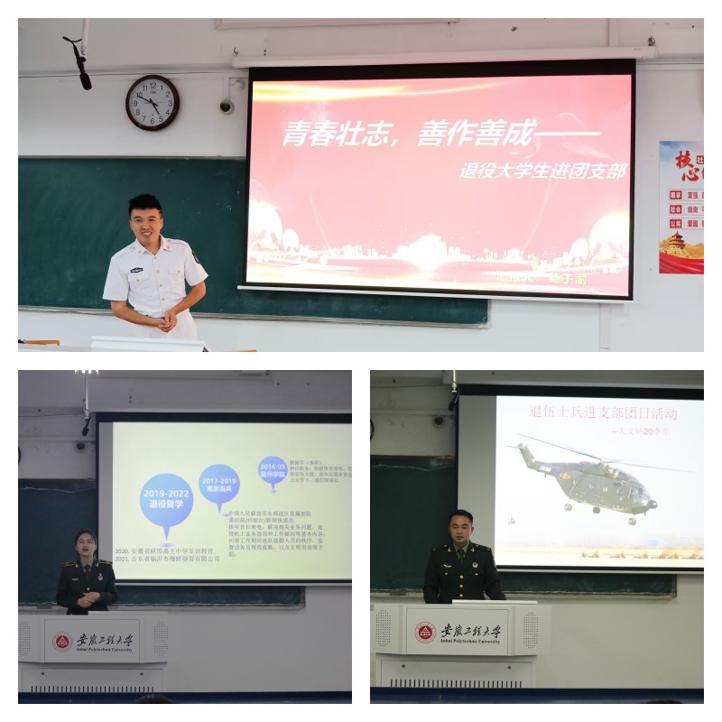据悉,本次活动系我院特色品牌项目,是“青春建功二十大,昂扬奋进新征程”“百年百人百场讲”进团支部活动的重要组成部分,更是推动学院征兵工作,落实“三全六专”育人工作“正起来”的具体举措。后期,学院将在退役研究生教官进团支部的基础上,持续开展退役大学生、研究生的宣讲活动,加强思想引领,强化榜样作用,推动“三全六专”工作走深走实。
