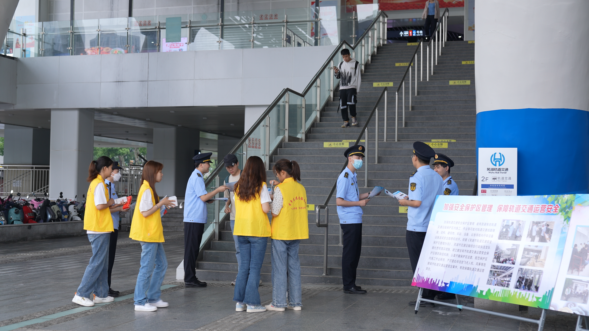 上午9点,鸠兹广场轻轨站出入口,随处可见忙碌的“小黄人”们。“青领计划”学生代表、“阳光之旅”青年志愿者服务队的志愿者们身着黄色队服,秉承“奉献、友爱、互助、进步”的志愿服务精神,向往来乘客发放宣传资料和实用且具有鲜明宣传特色的小礼品,并耐心讲解公路法律法规、货运物流保通保畅政策和便民服务举措。在宣传咨询台,志愿者们协助市交通局执法支队解答乘客们关心的热点、疑点问题,并做好记录工作。“青领计划”学生代表行管201宋雨欣表示:“这次的志愿服务活动增长了我对路政政策法规的了解,提升了乘客们的爱路护路意识,助人又助己,非常有意义”。