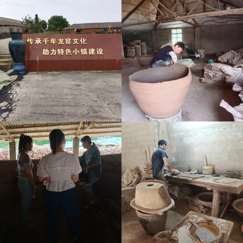 7月12日,团队到达宁国金牛山陶业有限公司进行参观交流。通过与公司负责人孙成宏的深入交流,团队了解到港口镇目前只剩下8家活态龙窑仍在坚守,按照“产业+文化+旅游”的模式,正积极向文旅产业转型,着力打造全国最大的柴烧陶艺生产基地、全国非遗活态传承基地。根据前期的资料搜集及调研成果,团队成员对港口镇陶业及其技艺的传承与发展提供了相关思路与建议。最后,团队集中学习了习近平总书记对文化遗产保护作出的重要指示批示精神,在交流研讨环节,团队成员纷纷表示,“非遗”不仅是传统文化的载体,也是乡村振兴的重点领域,保护好“非遗”,就是在传承文化基因,守护民族文化的根和魂,作为青年大学生,要推进“非遗”进校园,推动“非遗”在新时代绽放新光彩,让文化在一代代人的手中传承。