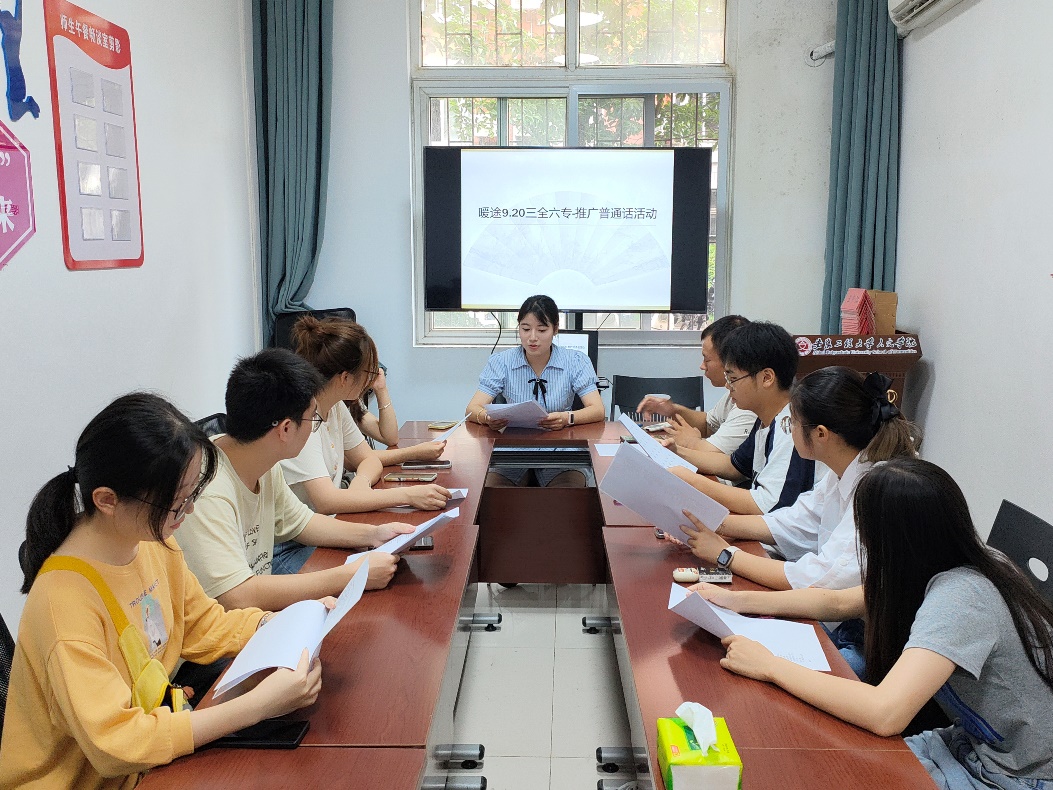 为保障本次活动顺利、圆满进行,学院对志愿者进行了培训,要求志愿者做到全程全员讲普通话,并经过合理策划,组织志愿者在和谐社区工作站讨论活动安排,制定活动方案。
