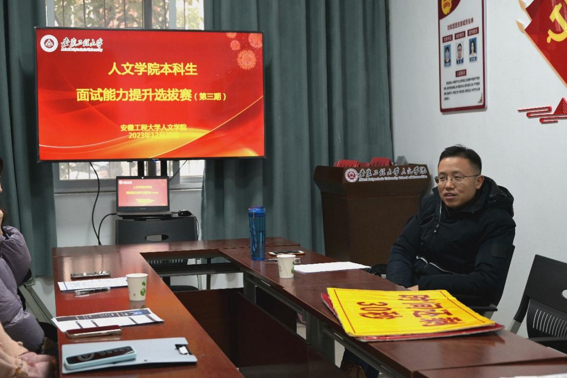 为推深做实“共青团促进大学生就业行动”和“三全六专”育人实践,深化针对性培训,提升学生的就业能力和学生干部“我为同学办实事”的能力,12月20日下午,人文学院在和谐社区工作站暨“青年之家”学生会服务站举办本科生面试能力提升选拔赛。人文学院党委副书记王中江、团委副书记利昕云参加并担任评委。