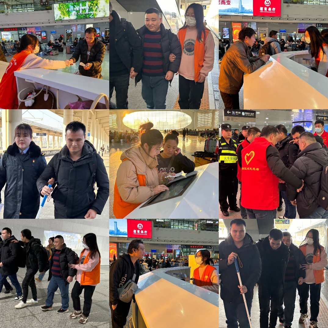 为做好盲校学生返(离)芜出行帮扶,芜湖站联合暖途青年志愿者服务社开展帮助特需旅客爱心行动。110日、11日、18日、22日,志愿者们与火车站工作人员相互配合,一句问候、一杯温水、一把搀扶,竭力为盲校学生提供更加优质、周到的服务,温暖特需乘客的出行路。志愿者们认真、耐心地服务,获得了盲校学生的感谢和好评,也得到了火车站工作人员的大力赞扬。
