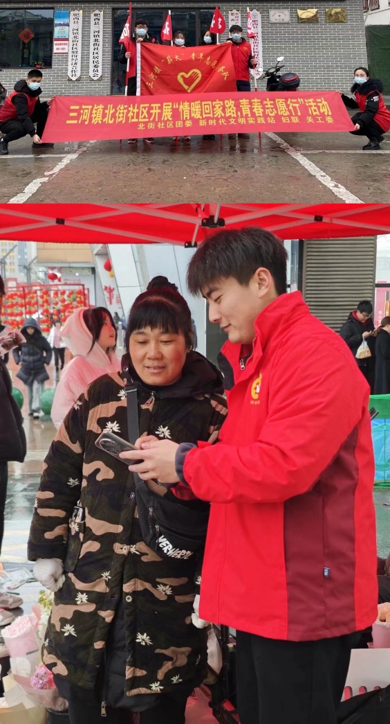 2月6日,在阜阳市临泉县秦庄村,行管(升)231郭威莉积极参与村务实践和志愿服务活动,为村民答疑解惑、清扫道路垃圾,帮助当地提升村民的安全感、幸福感、获得感;在合肥市肥西县三河镇北街社区,社工研23夏明宝参加当地“情暖回家路,青春志愿行”活动,耐心地为老年人讲解智能手机的基本使用方法和社交软件的使用技巧,助力老年人跨越数字鸿沟。