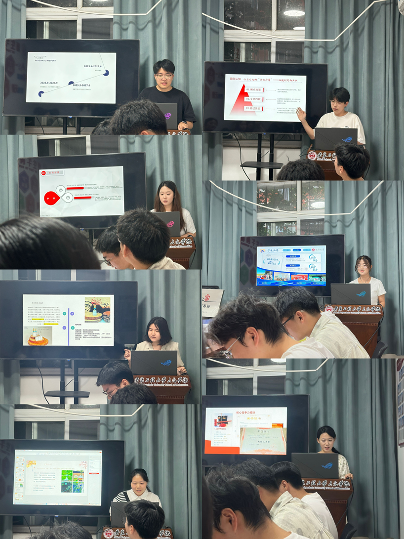 经过班级团支部的宣传和推荐,共有7名学生作为“求职者”参加本次活动。比赛严格按照结构化面试流程进行,“求职者”分别从基本信息、社会实践经历、对应聘岗位的理解等方面进行自我介绍,再根据“面试官”给定的问题发表自己的观点。模拟面试结束后,“面试官”根据自身求职、参赛经验,从PPT制作、语调语速、面试态度与应变能力等方面对“求职者”的表现进行点评,并提出优化建议。
